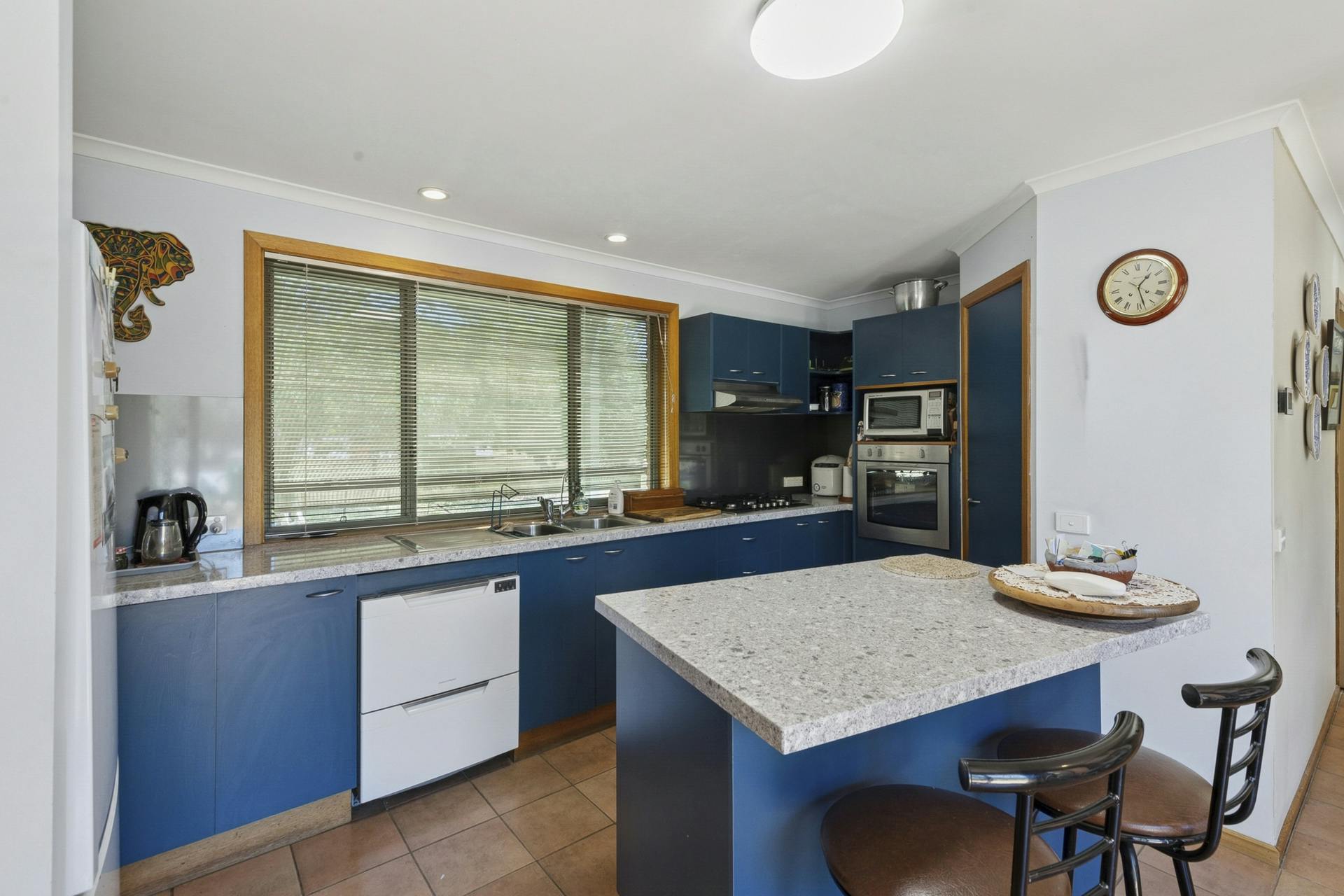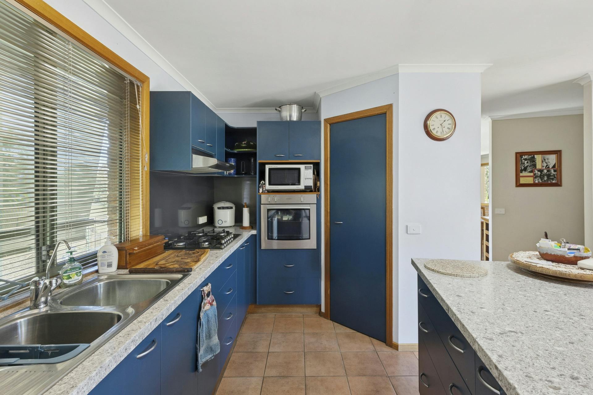 The kitchen is well equipped with gas cooking, an electric oven, and electric hot water, with easy flow to the dining and lounge areas. Town water, a septic system, and a rainwater tank provide practical flexibility for household and garden use.