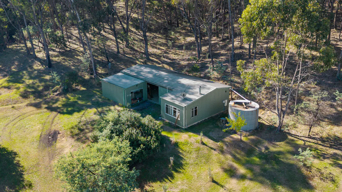 Energy independence is supported by a near-new hybrid solar power system featuring a programmable inverter, substantial lithium battery storage, and an auto-start diesel generator, ensuring reliable power to the house, shed, and essential systems.