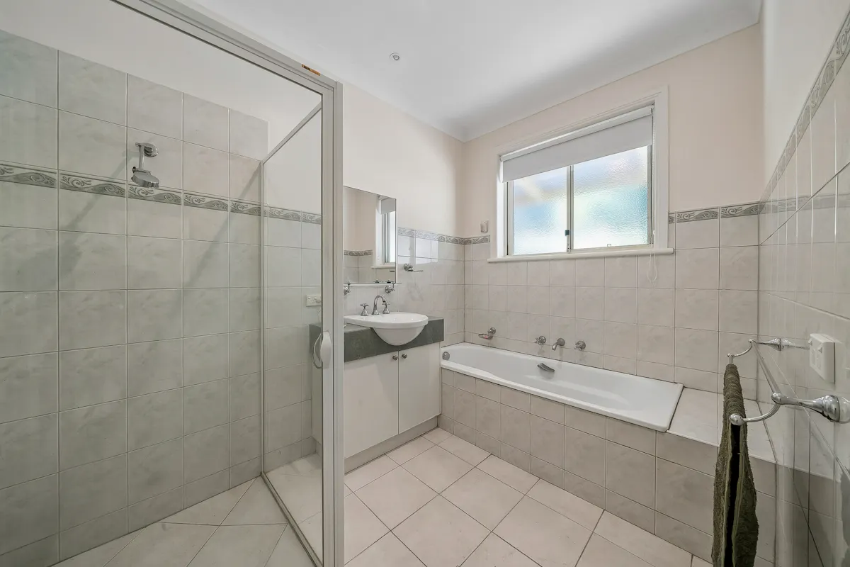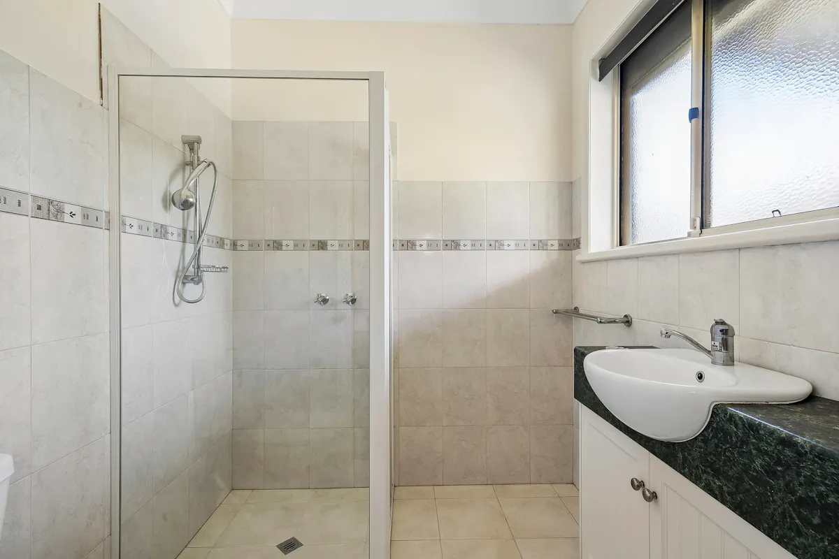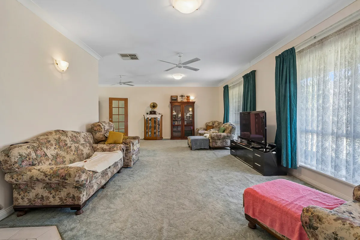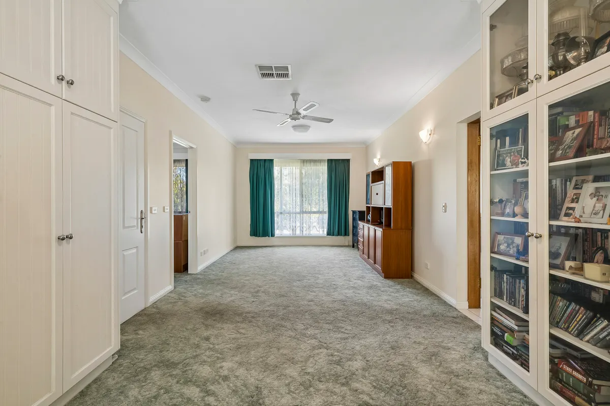 The home comprises three large bedrooms, including a master with walk-in robe and full ensuite, plus a versatile fourth bedroom with its own ensuite and walk-in robe that can be separated for independent living. Multiple living zones include an additional sitting room with extensive storage. The home is well-appointed with three toilets, two full bathrooms, and three showers, along with a large walk-in pantry, linen storage, and abundant cabinetry throughout.