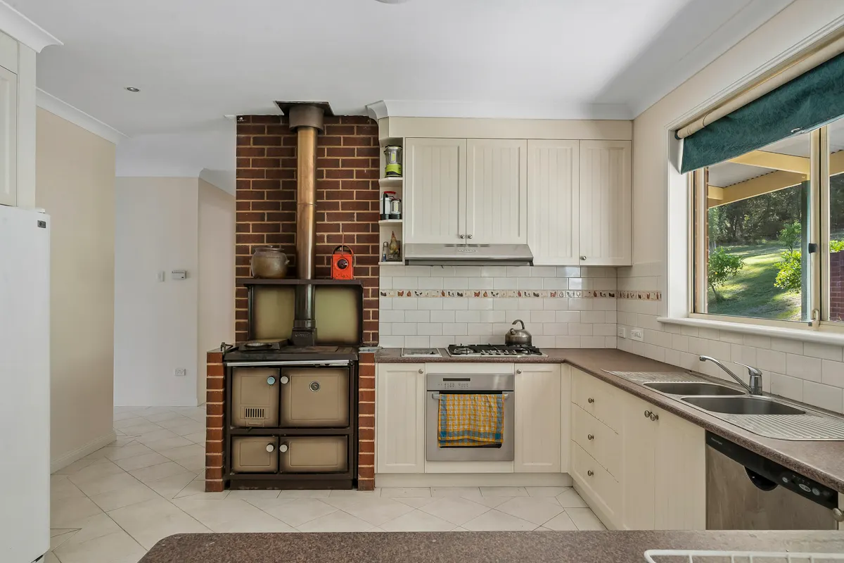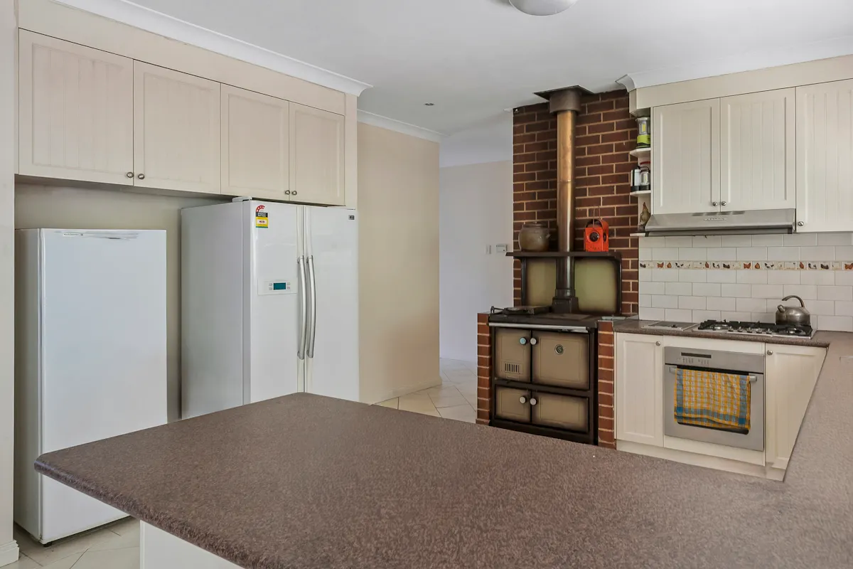 Comfort is assured year-round with evaporative ducted air conditioning, a large clean air wood heater, and a Stanley wood stove. The modern kitchen includes quality Technika appliances and a Fisher & Paykel oven, catering to both everyday living and entertaining.