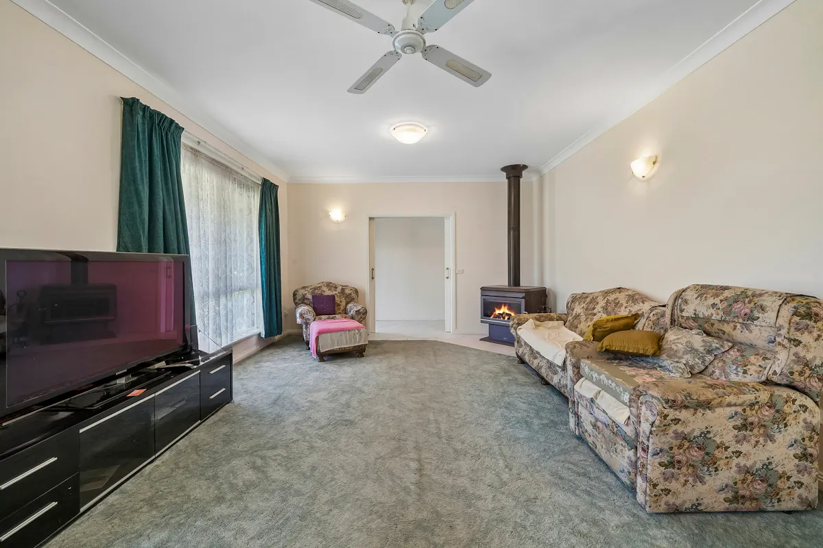Additional improvements include a 6m x 12m powered Colorbond shed with a self-contained studio featuring kitchenette, bathroom, and wood heating, ideal for guests or extended family. Established gardens, a fenced vegetable patch, and a wide variety of mature fruit and nut trees further enhance the property's appeal.