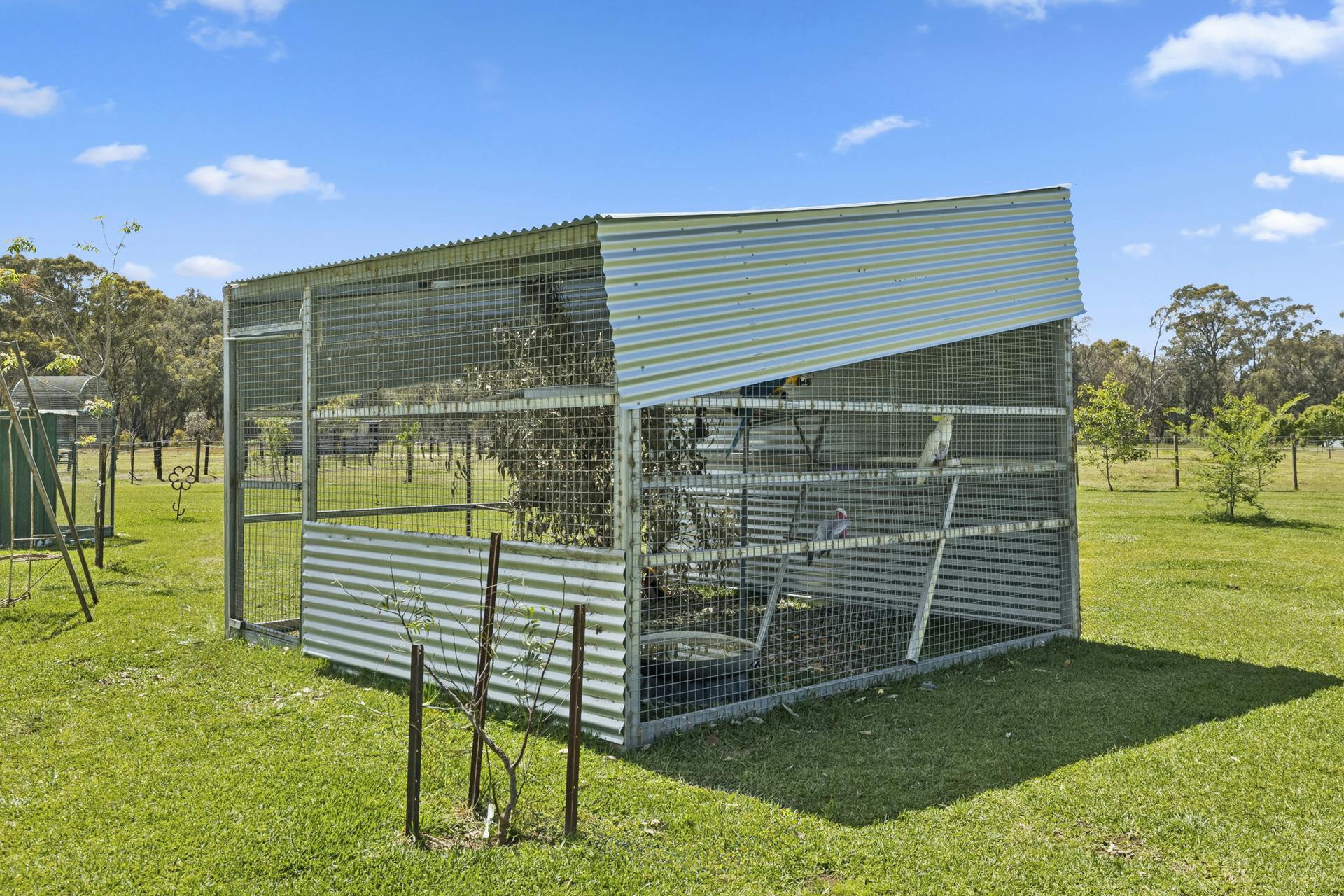 • Chook runs, bird aviary and established gardens