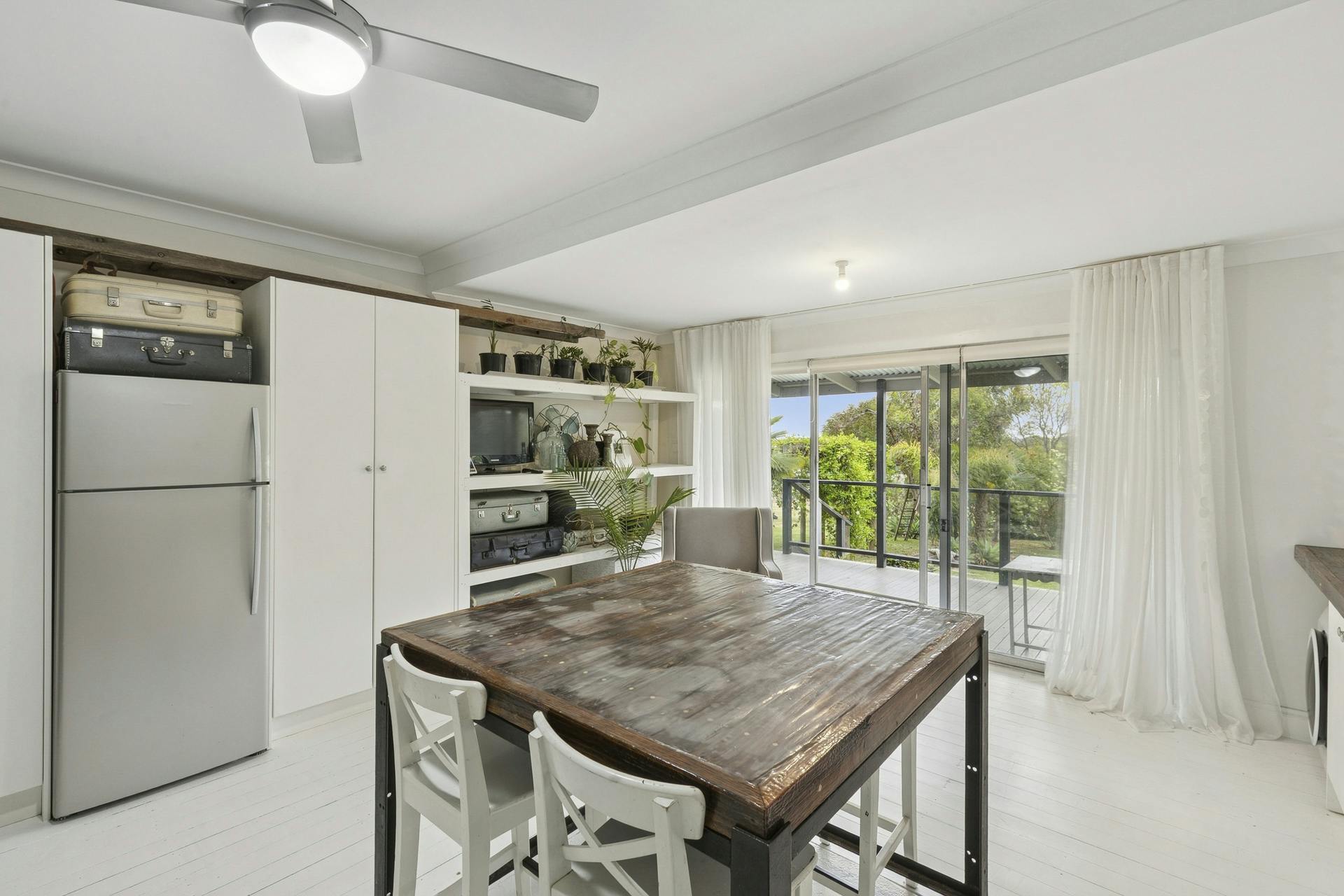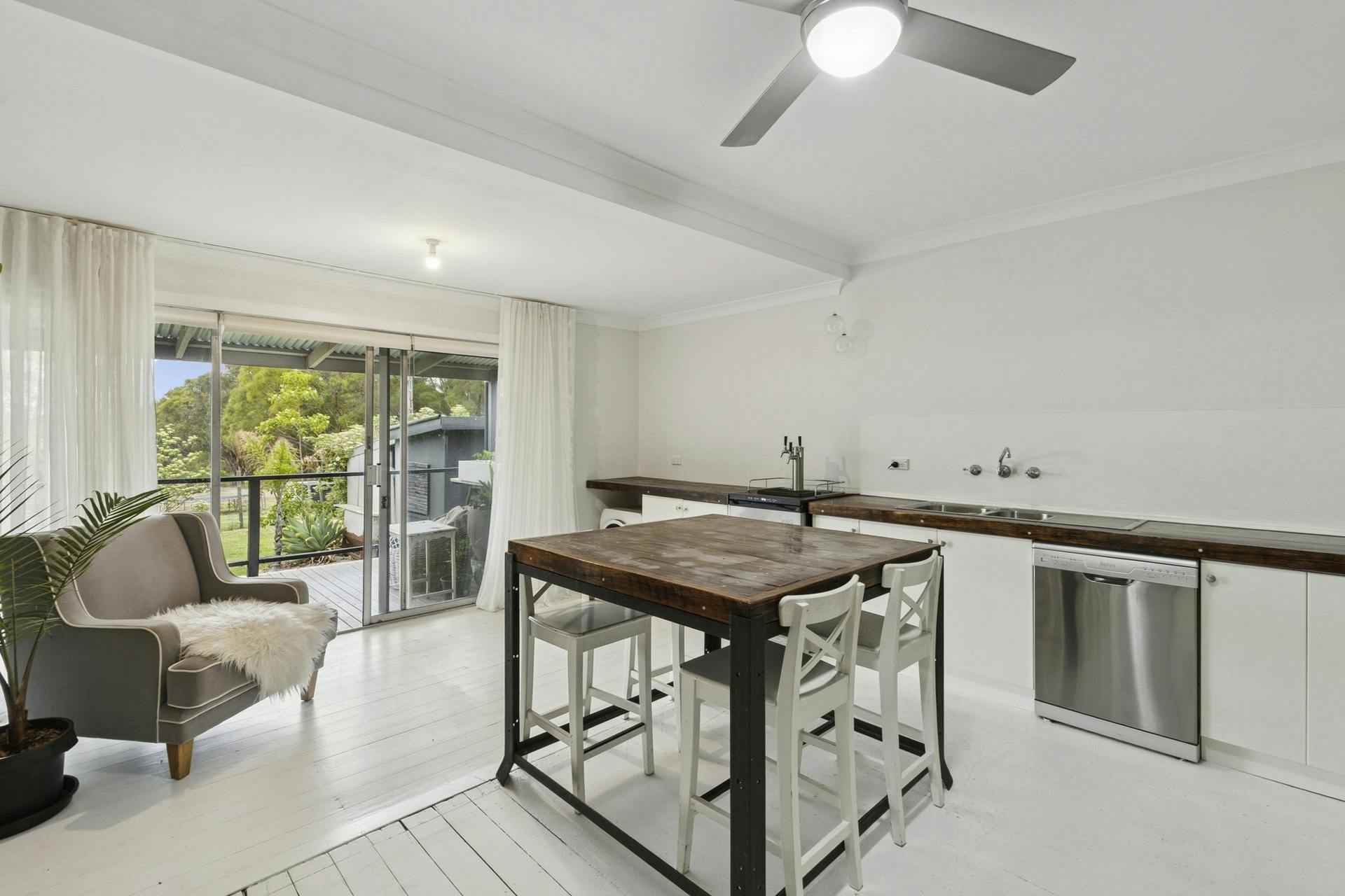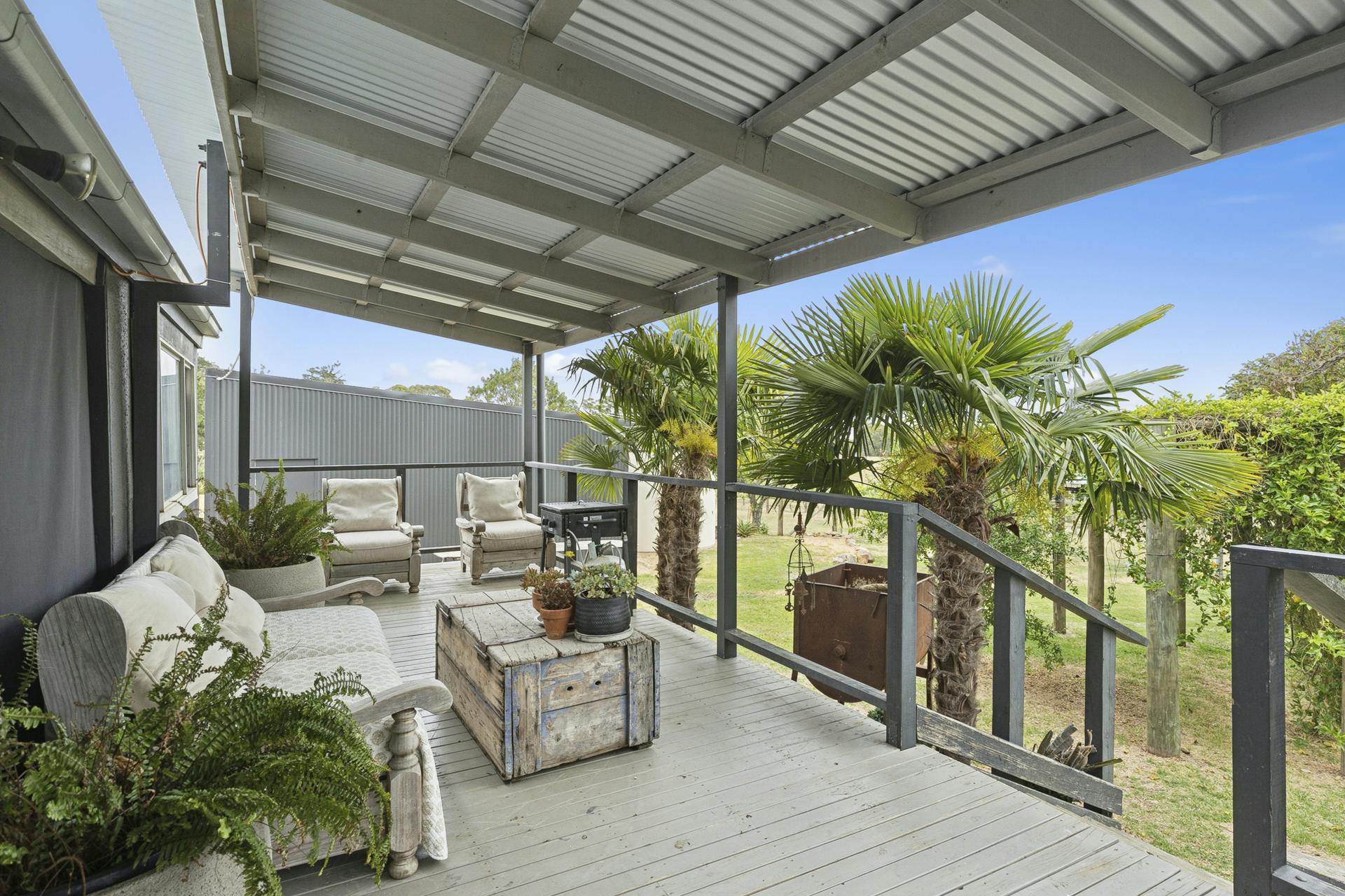 The home has been fully restumped and offers cosy year-round comfort with wood heating, split system cooling, and ceiling fans. Solar panels assist energy efficiency, while the interior provides a warm country feel with plenty of potential to finish in your own style. A decked rear verandah overlooks the grounds – ideal for outdoor dining and sunset views.