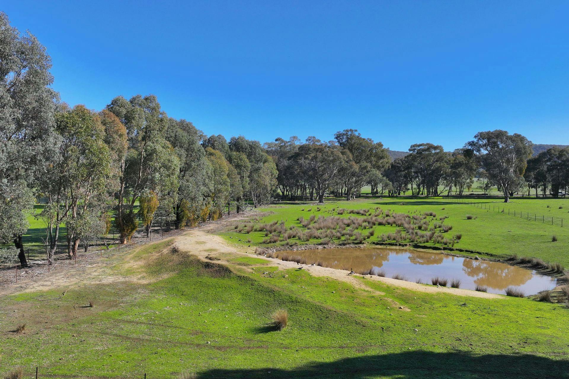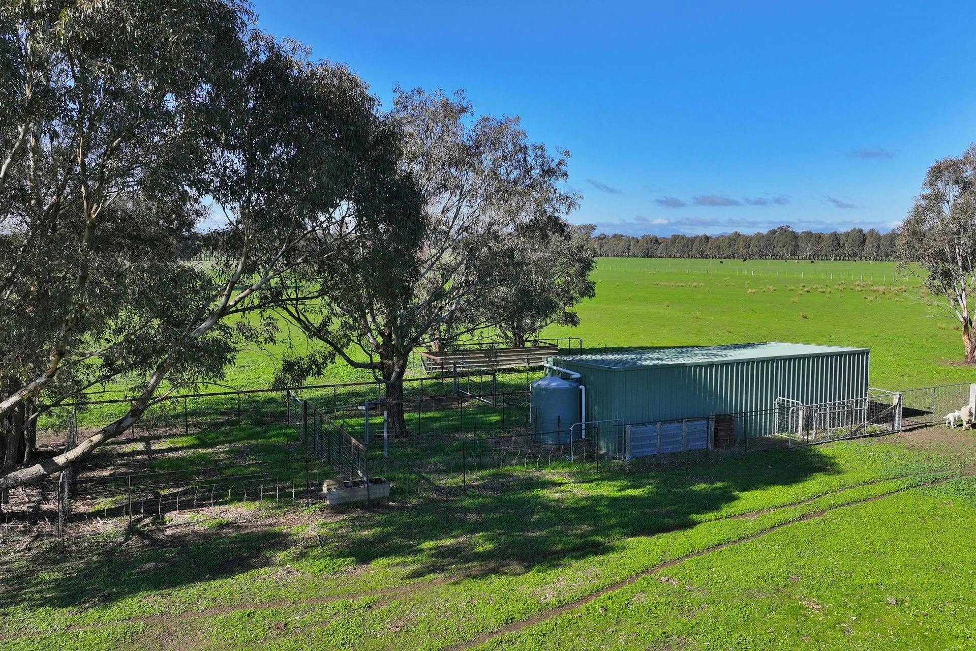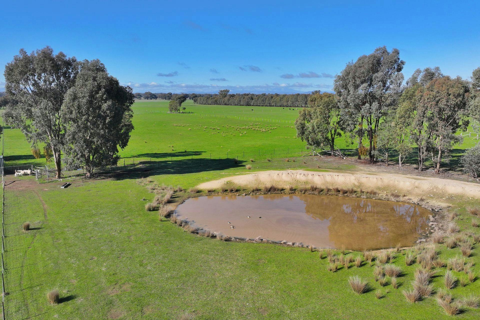 • Gently undulating land with a dam, established rural fencing, and a storage shed